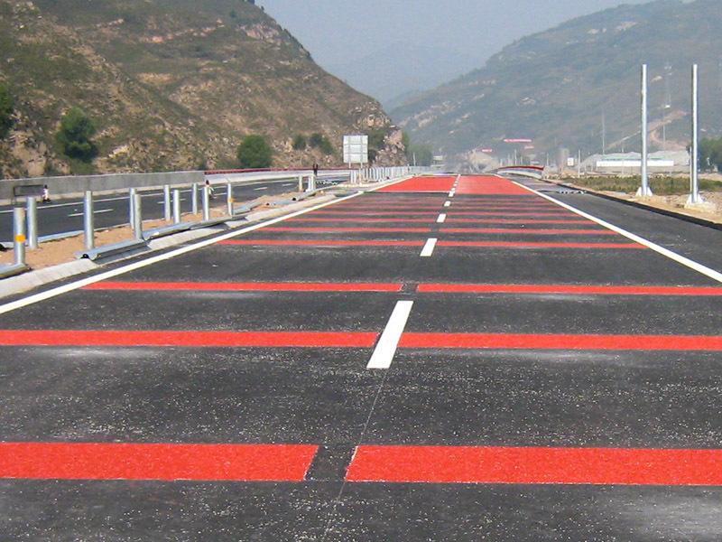 鋪筑不同色彩的路面在某種程度上比垂直的交通標志更好,它可以直觀的給駕駛員以信號。例如,在交通事故多發(fā)地段,可以鋪筑紅色或黃色路面,直觀地提醒駕駛員謹慎行車。在通過中小學(xué)校區(qū)的道路上, 鋪筑鐵紅色路面, 使車輛減速慢行, 避免危險的發(fā)生。